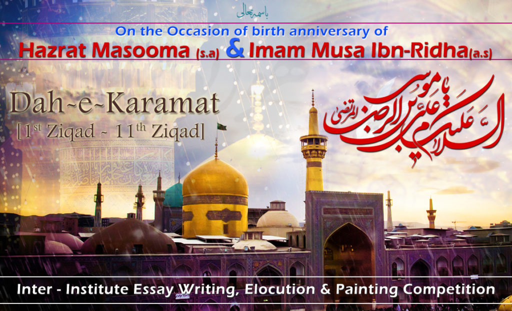 Find out more »Essay Writing, Elocution & Drawing Competition on Imam Ridha (as)